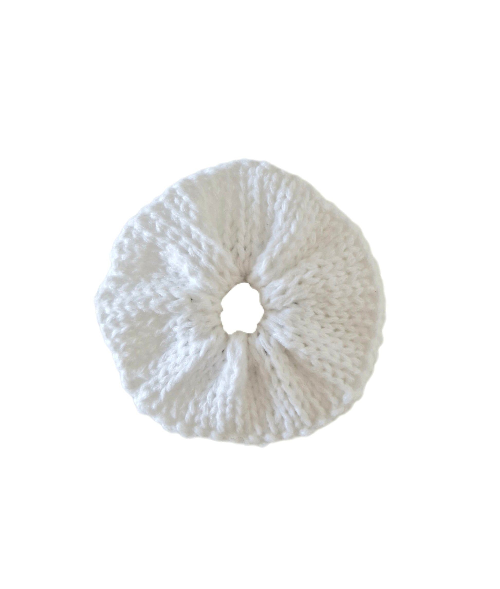 Its pure white colour gives it a fresh, clean look, making it a versatile addition to your wardrobe, especially for casual or cosy looks. The knitted texture adds a unique, charming touch, contrasting with smooth, traditional hair ties.