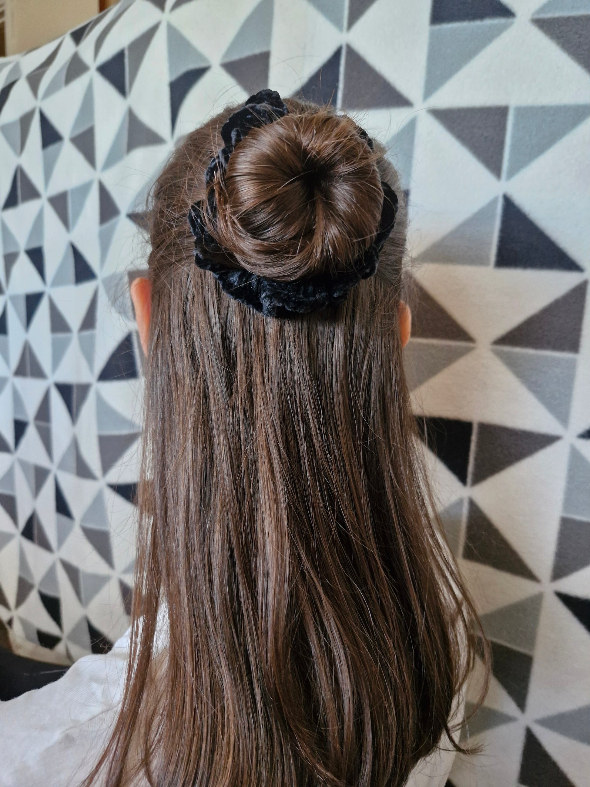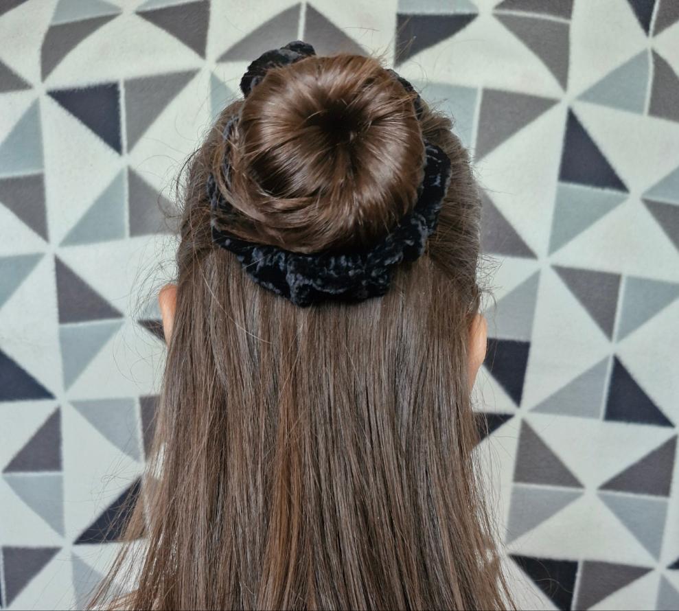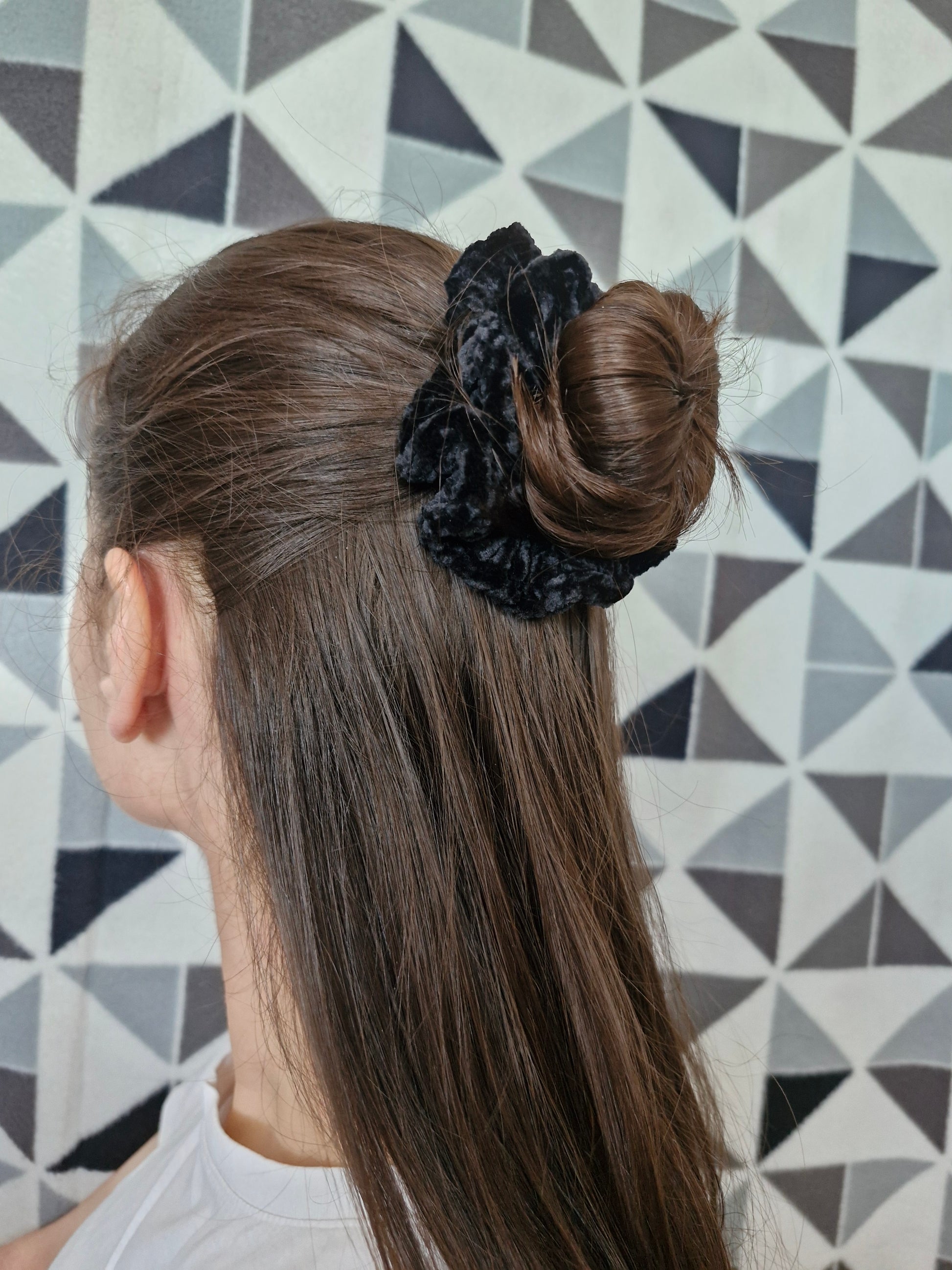 Shiny, Soft and Stunning. Whether it is day or night, rain or shine this classic black scrunchie works all the time for any outfit.